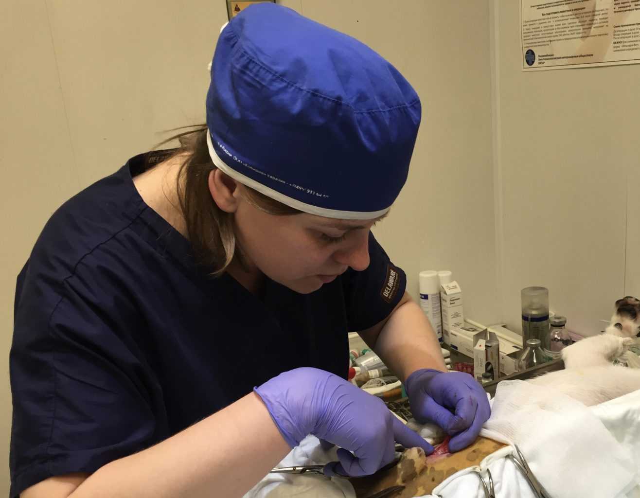 Врач ветеринарной клиники «Айболит Плюс» на операции
