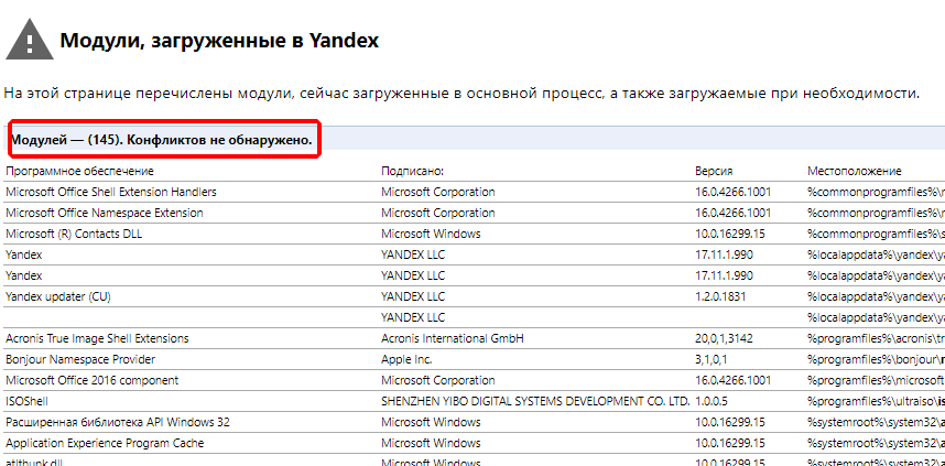 Для этого откройте Яндекс браузер и в адресной строке введите команду browser://conflicts/ и нажать Enter.