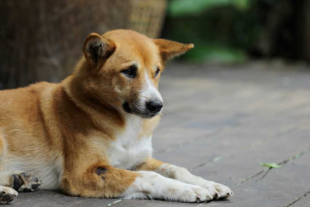 - пес выглядит испуганным;