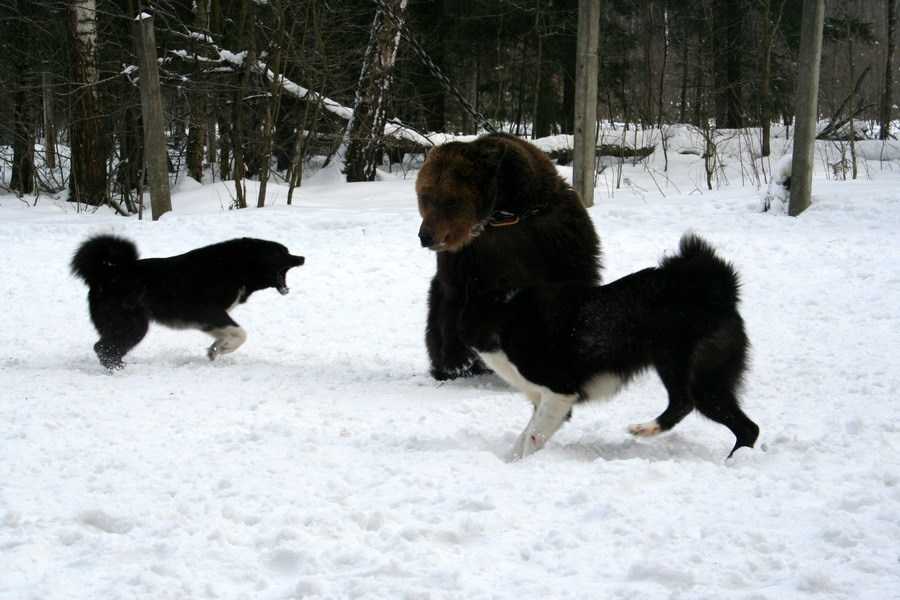 Охоту на медведя можно начинать, когда лайке исполнится 2 года. В идеале стоит сначала показать псу мертвого зверя и посмотреть на реакцию. Если собака испугается и начнет убегать, не стоит ее натаскивать. Если же знакомство прошло нормально, охотничью лайку приучают к запаху, показывая медвежьи следы и места лежанок.